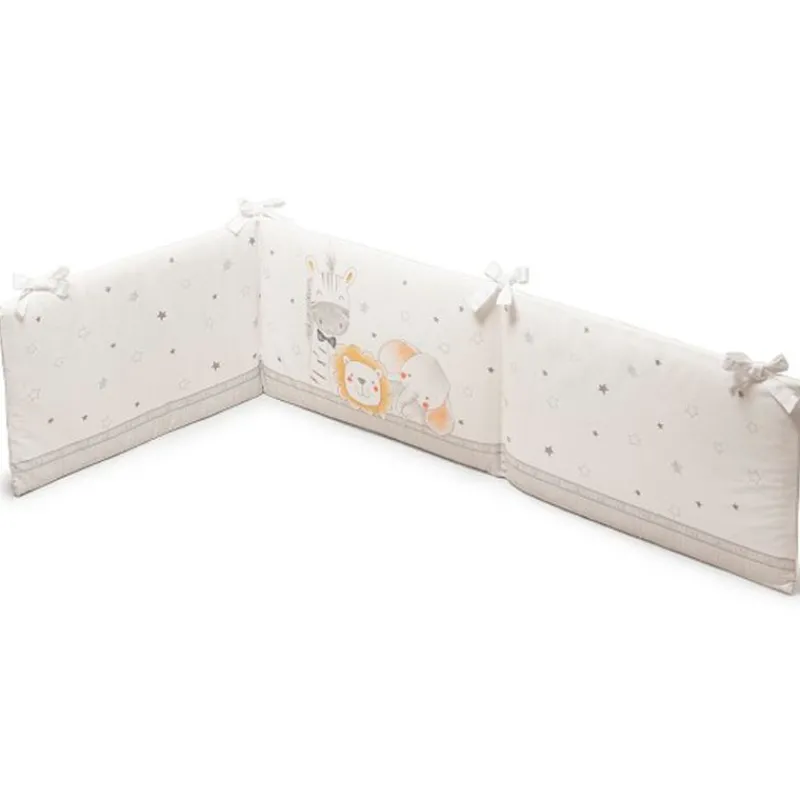 El protector tiene el relleno de fibra hueca siliconada para que el bebé si se mueve no se haga daño.