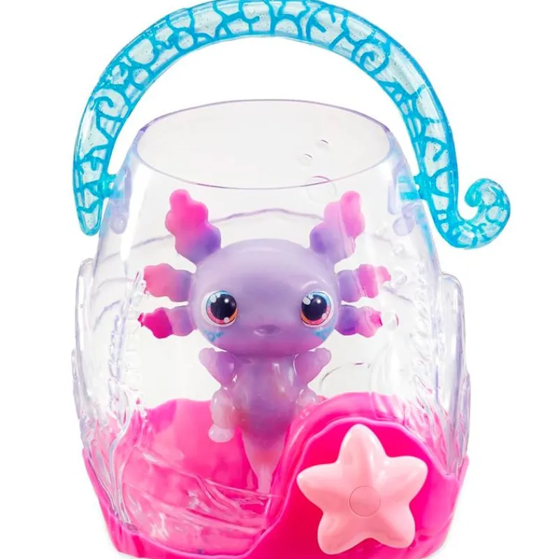 Axolote es tu mascota electrónica elástica, esponjosa e iluminada ¡Cuando se sumerge bajo el agua revelará su fascinante efecto de resplandor! Con sus tentáculos flexibles, aporta una experiencia táctil y sensorial, mejorando el juego interactivo ya que los más pequeños pueden participar con sus partes móviles. Llena el arrecife de burbujas con agua, presiona el botón mágico de burbujas y mira cómo baila alrededor de su acogedora casa de acuario. Funciona con 3 pilas LR44 incluidas (pilas de demostración). Recomendado a partir de 4 años.