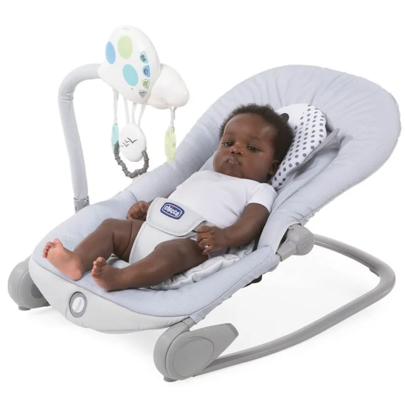 Acogedora hamaca que entretiene al bebé con luces y sonidos durante los primeros 6 meses y se convierte en una cómoda sillita cuando sabe sentarse solo