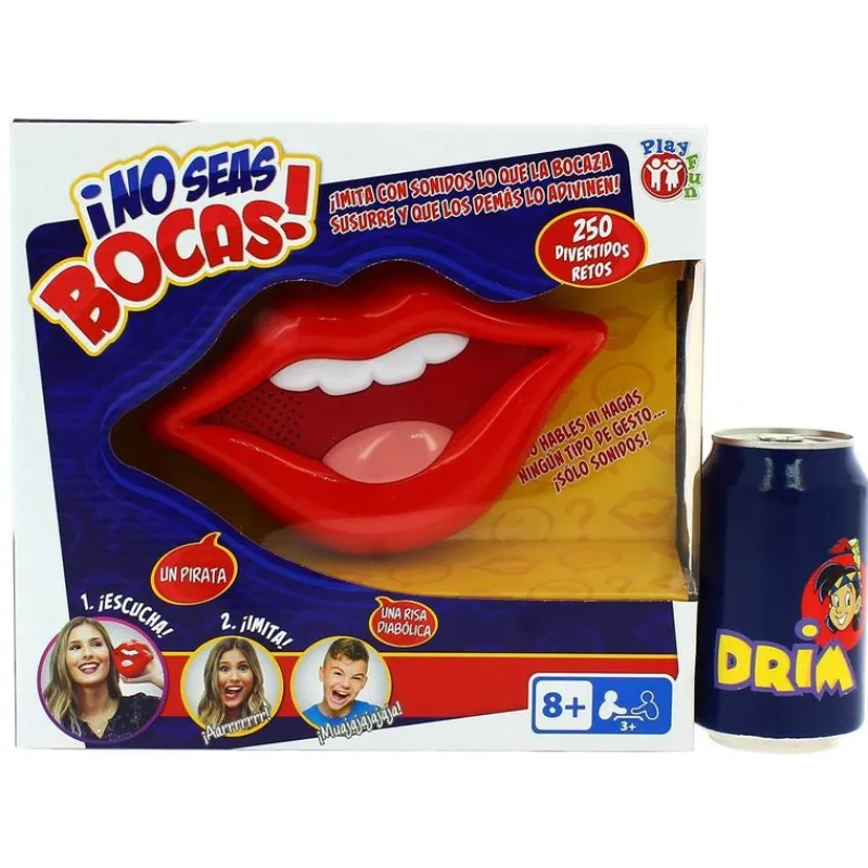 Divertido juego en familia, en el que el objetivo principal es representar con sonidos lo que la boca te susurra al oído. Está prohibido usar gestos o pronunciar palabras… ¡Exclusivamente sonidos! Cada vez que un jugador acierte lo que representaba el imitador ganará 2 puntos. Podrán pedir ayuda… ¡Pero tendrán que pagar por ello con puntos! Con las cartas se pueden conseguir puntos extra y permitir gestos o bloquear rivales ¡Ganará el jugador con más puntos! Funciona con 3 pilas AAA NO incluidas. Recomendado a partir de 8 años.