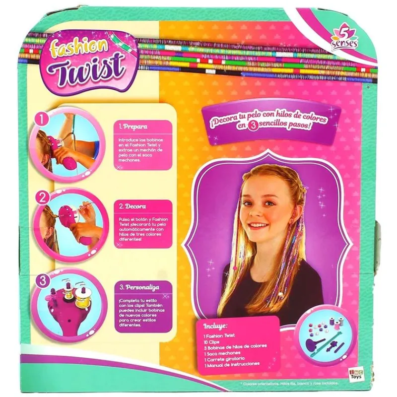 Crea con Fashion Twist llamativos peinados con hilos para tu cabello, en 3 sencillos pasos. Solo tendrás que escoger un mechón, poner el trenzador en la base de tu pelo y pulsar el botón… ¡Tendrás tu mechón de colores personalizado! Incluye 3 bobinas, hilos de diferentes colores y clips para que puedas crear diferentes estilos. Funciona con 3 pilas AAA NO incluidas. Recomendado a partir de 5 años.