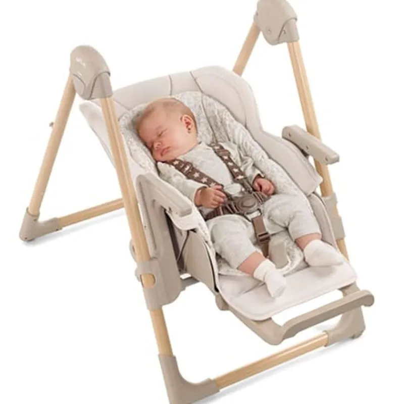 Esta trona crece en altura pasando por diferentes posiciones, desde hamaca (para bebés desde el nacimiento) hasta la posición más alta para la hora de comer.