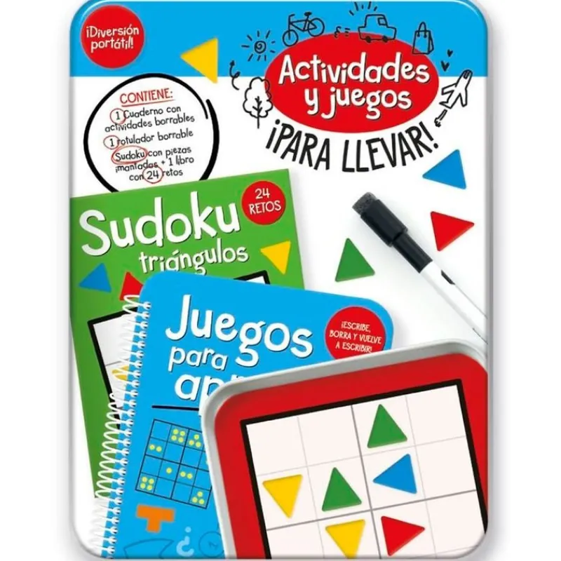 En el interior encontrarás un rotulador borrable para utilizar en las diferentes hojas del cuaderno y los juegos del interior, con piezas imantadas y 2 juegos de actividades.