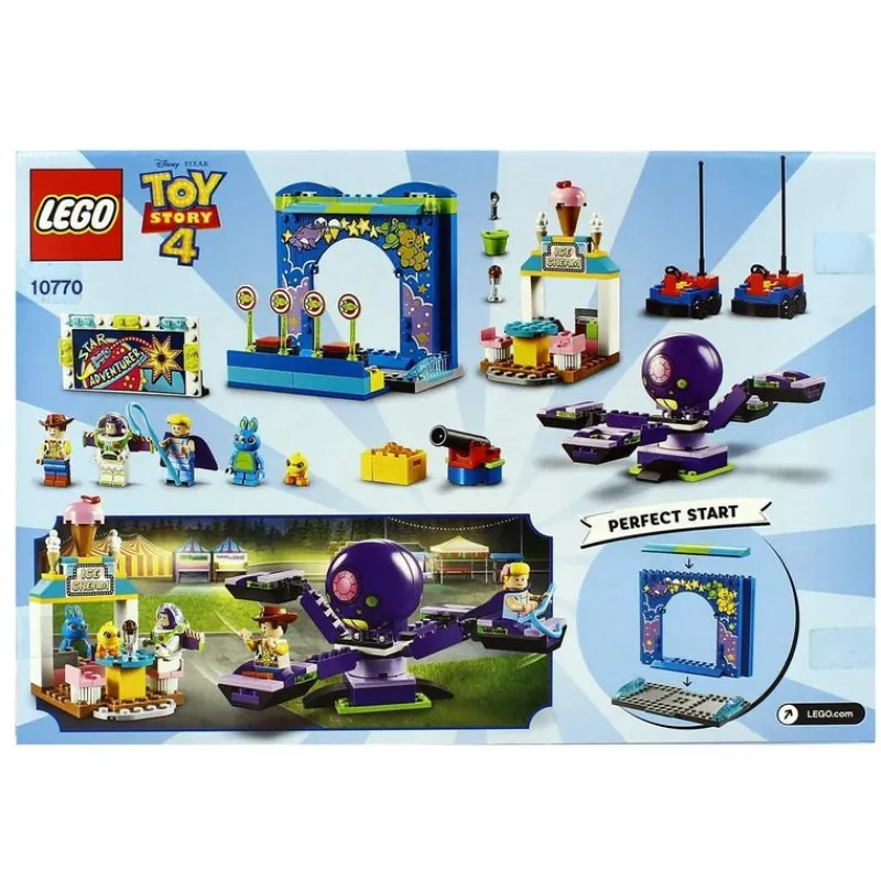 Incluye las figuras LEGO de Woody, Buzz Lightyear, Bo Peep, Ducky y Bunny. Recomendado a partir de 4 años.