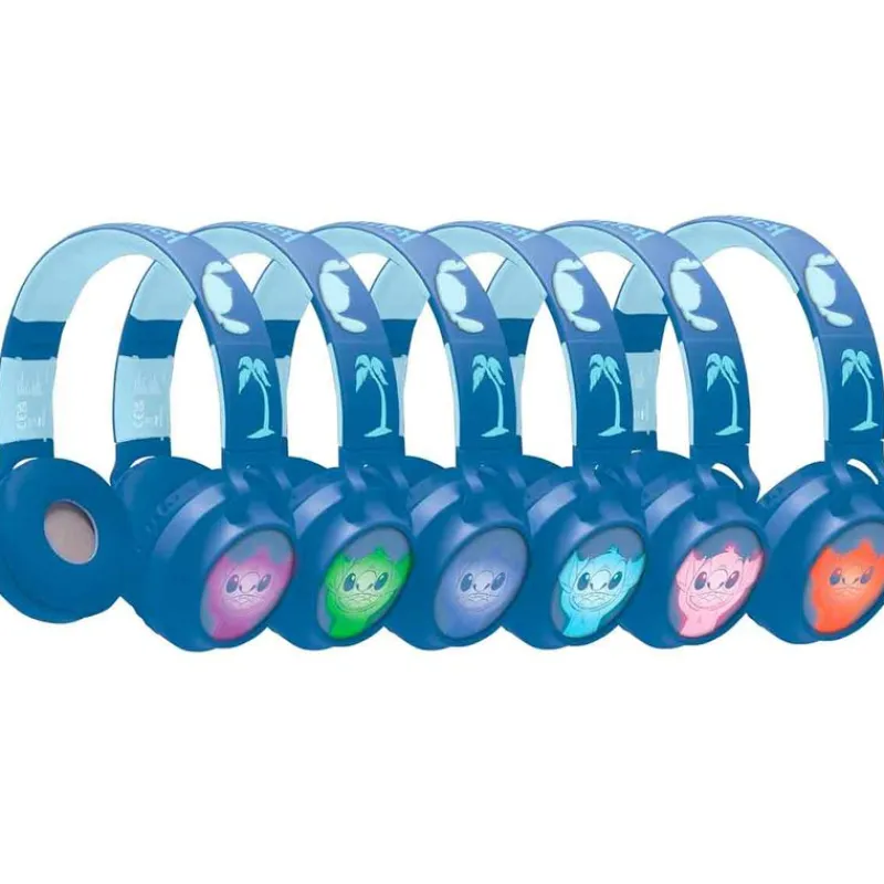 Auriculares de audio 2 en 1 con diseños inspirados en el divertido personaje de Stitch, con los que podrás escuchar tu música de forma inalámbrica en Bluetooth 5.3 (hasta 10 km de alcance) o conectada con el cable jack extraíble. Estos auriculares te permitirán escuchar tu música hasta 60 horas… ¡Sin cables! El micrófono integrado te permitirá contestar llamadas telefónicas. Los botones de reproducción/pausa y volumen te darán el control total de tu música. Compatibles con todos los dispositivos con Bluetooth (smartphones, tabletas, reproductores de audio y vídeo) o con una salida de audio Jack de 3.5 mm para auriculares. La batería recargable integrada de 600 mAh proporciona hasta 60 horas de tiempo de escucha. Si se queda sin batería, conéctalos directamente fácilmente a tu Smartphone u ordenador a través de la salida de audio de 3.5 mm. Sonido limitado a 85 dB que protegerá los oídos de los más pequeños. Al escuchar música los auriculares se iluminan de 6 colores diferentes. Las orejeras están hechas de cuero suave y agradable a la piel, lo que le permite escuchar música o jugar durante mucho tiempo cómodamente. Con su diseño plegable y ajustable, puedes guardarlas donde quieras ¡Y se adaptan a todas las cabezas! Recomendado a partir de 4 años.