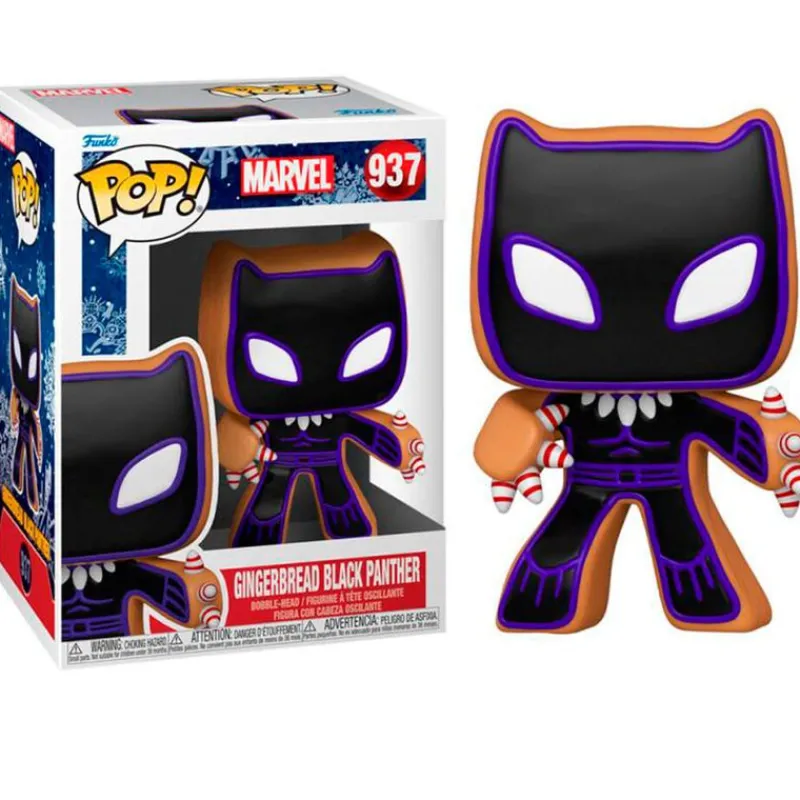 Figura fabricada en vinilo de la colección Funko POP con número 937, inspirada en el famoso personaje de Marvel, Black Panther, con un aspecto navideño. Su tamaño es de 10 cm aproximadamente. Recomendado a partir de 3 años.