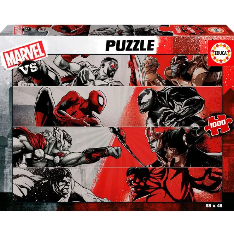 Puzzle compuesto de 1000 piezas con las que podrás construir una colorida imagen inspirada en diferentes personajes del universo Marvel.