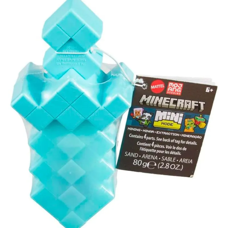 La colección Mini Mode Mining de Minecraft incluye un contenedor, una figura, un accesorio y arena moldeable.