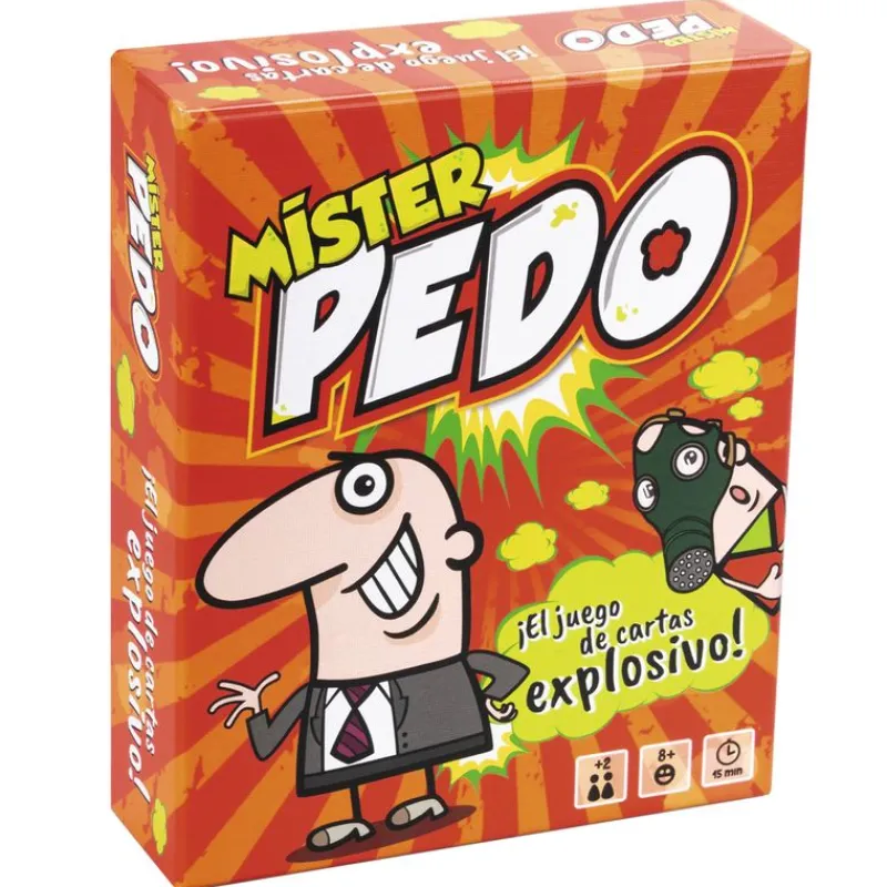 Conviértete en el campeón de los pedos pesados. Imita los pedos más apestosos y deshazte de tus cartas. En este divertido juego deberás descartarte de todas tus cartas para ganar. Pero… ¡Cuidado! Tus oponentes intentarán atufarte. Recomendado a partir de 8 años.