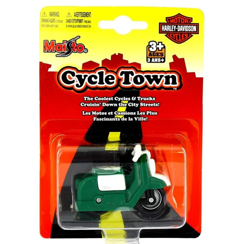 Moto en plástico modelo Harley Davidson en color verde a escala 1:64.