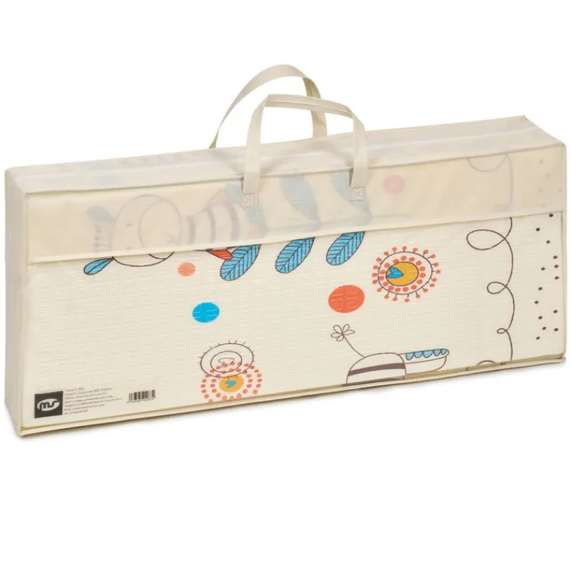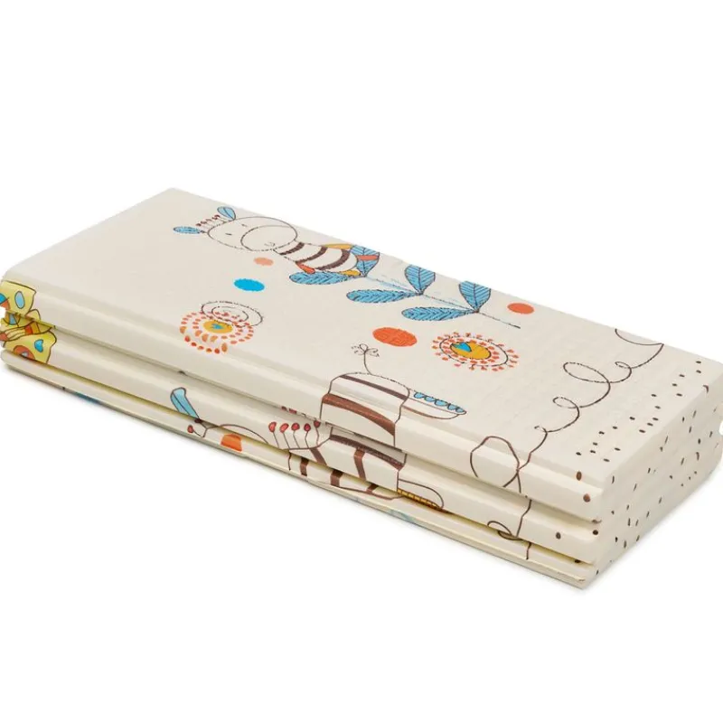Reversible en 2 ilustraciones, en uno de los laterales tiene una ciudad dibujada con una carretera y en el otro lateral tiene divertidos y coloridos dibujos para ayudar a la estimulación visual del bebe.