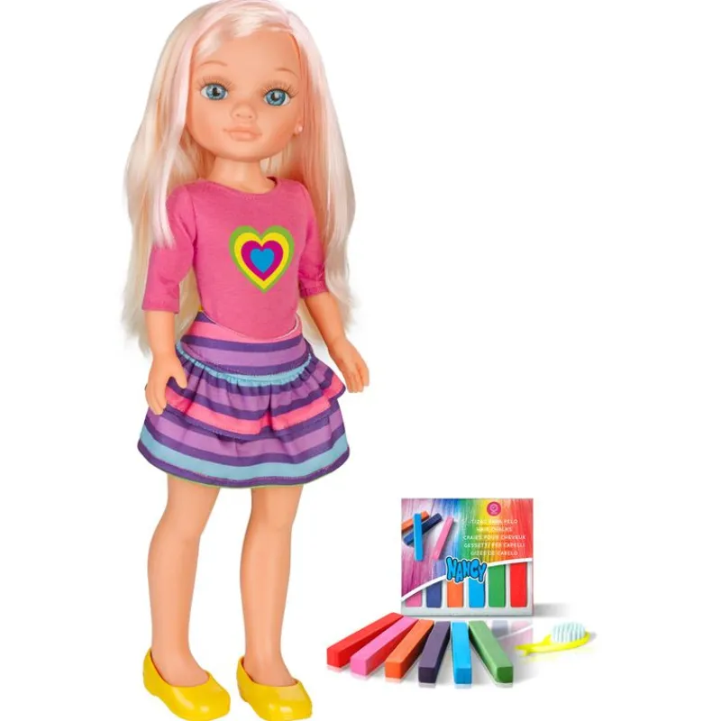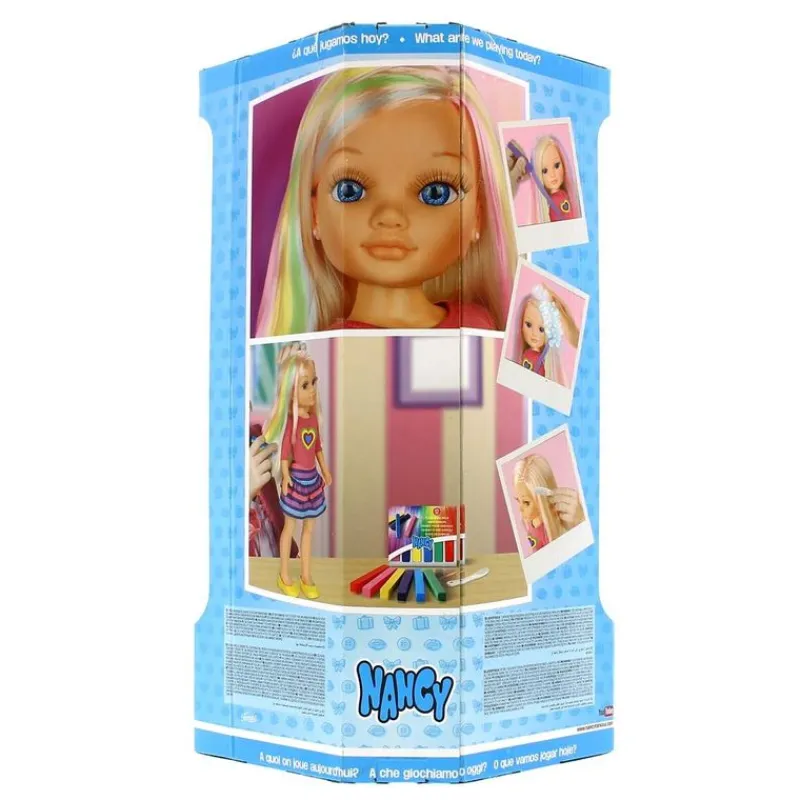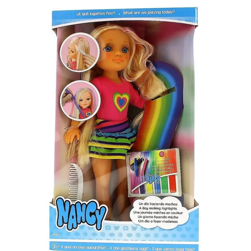 ¿A qué jugamos hoy? ¡Vamos a divertirnos haciendo mechas de colores a Nancy! En esta ocasión, Nancy tiene el pelo más largo que nunca para que la puedas peinar y decorar, y hacerle mechas con efecto arcoíris. Las tizas de colores también pueden ser usadas por la niña en su propio pelo.