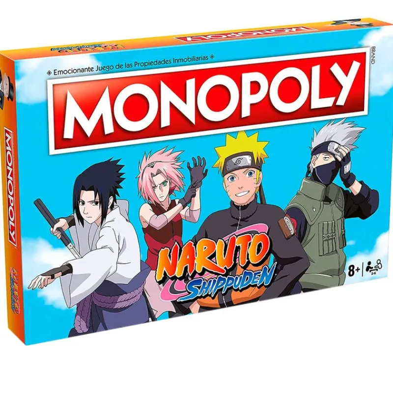 Clásico juego de Monopoly con temática inspirada en la famosa serie de anime Naruto Shippuden ¡Podrás convertirte en el shinobi más poderoso! Reúne a tus ninja favoritos, coge las cartas de entrenamiento y misión y desarrolla las técnicas ninja para evitar la bancarrota. De 2 a 6 jugadores. Recomendado a partir de 8 años.