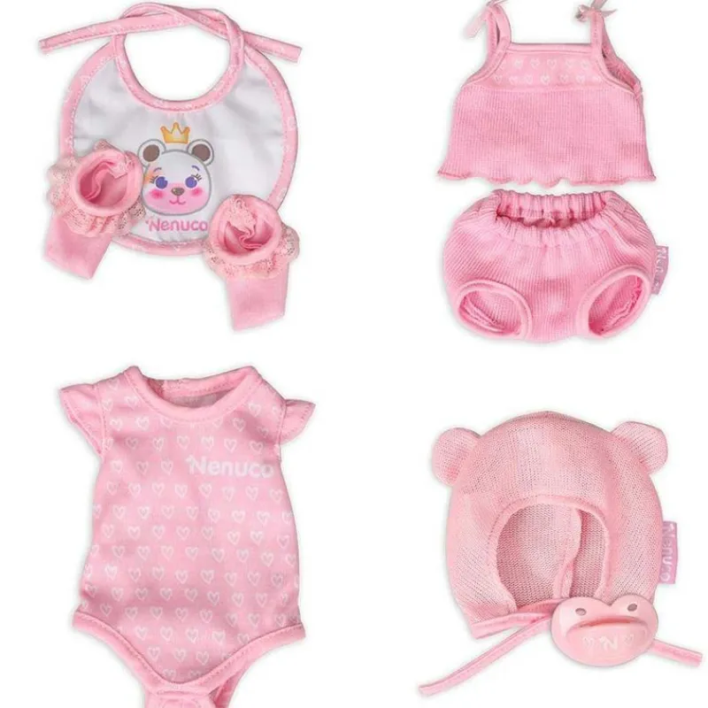 Pack en el que encontrarás accesorios para poder vestir a tu muñeco bebé Nenuco. Compatible con muñecos de 35 cm aproximadamente. Recomendado a partir de 2 años. EXISTEN MODELOS DIFERENTES. SE VENDEN POR SEPARADO. SE SURTIRÁN SEGÚN EXISTENCIAS. AL REALIZAR LA COMPRA, PUEDES RECIBIR CUALQUIER MODELO SURTIDO AL AZAR, INCLUIDOS MODELOS QUE NO SE ENCUENTREN EN LAS FOTOS. PRECIO POR UNIDAD.