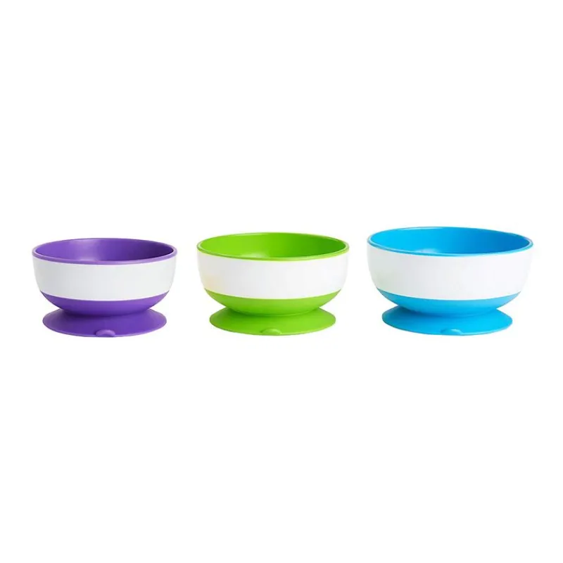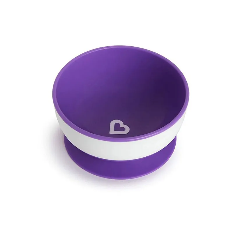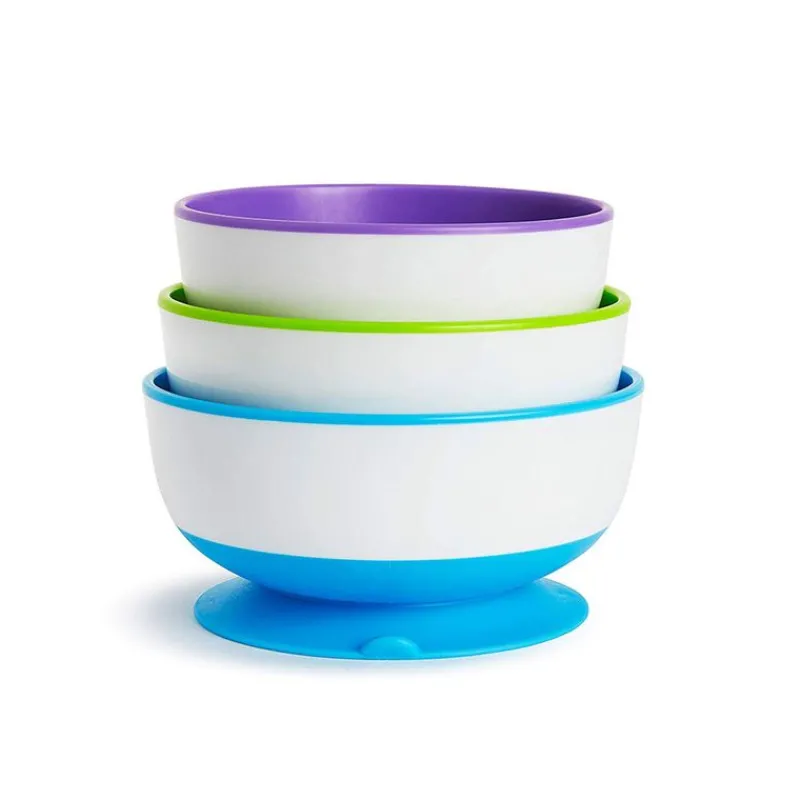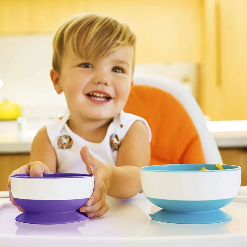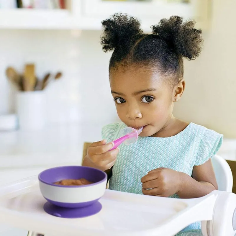 Y las paredes de los cuencos son altas y curvadas para ayudar a los niños a comer solos.