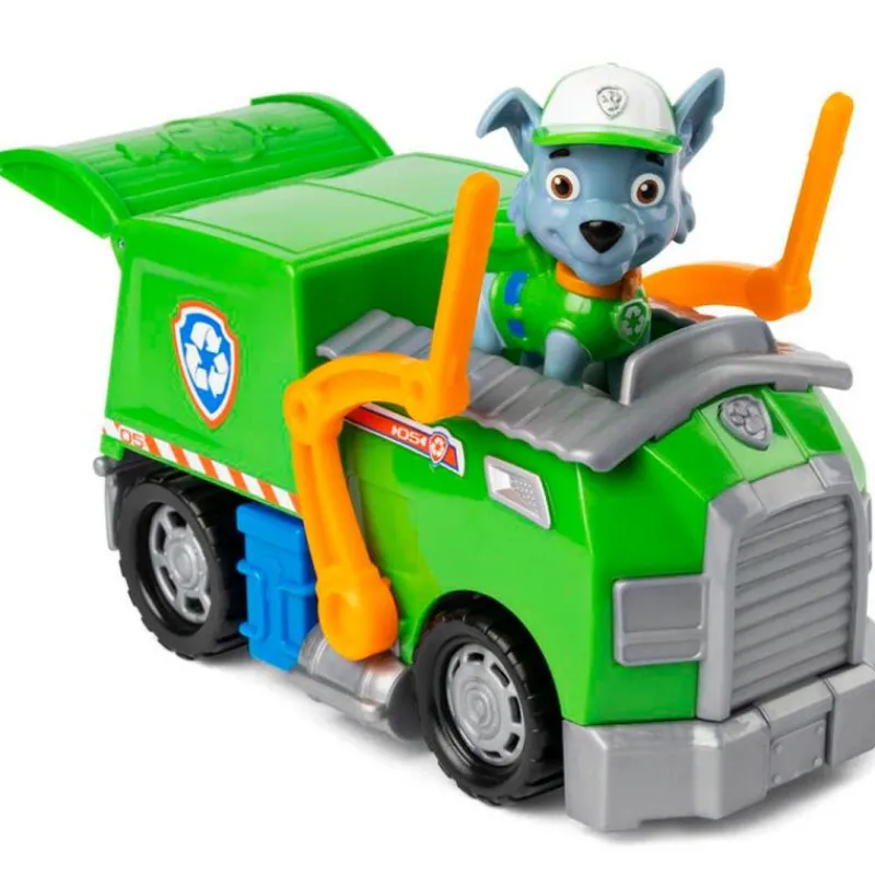 Vehículo con Rocky, personaje de la serie de animación Patrulla Canina. El montacargas gira y la parte trasera se abre como si fueran de verdad. Podrás extraer a Rocky del vehículo para poder jugar por separado. Recomendado a partir de 3 años.