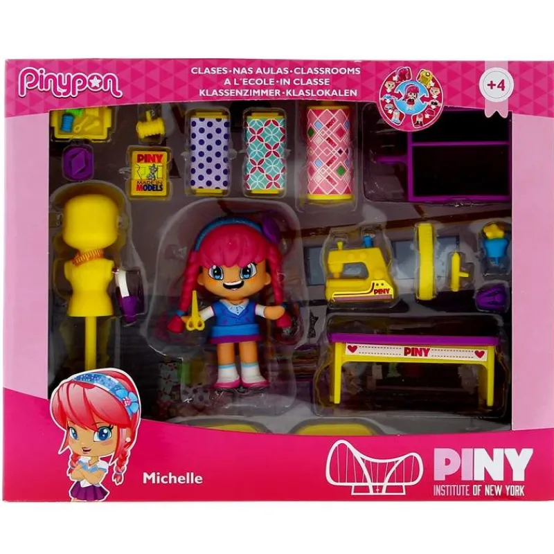 Michelle acude a su primera clase de sastrería, quiere aprender cosas nuevas y convertirse en una buena profesional en el sector. Incluye 1 muñeca y muchos accesorios para complementar el juego. Añade este set al Instituto de Pinypon y haz que tu centro sea más grande y divertido.