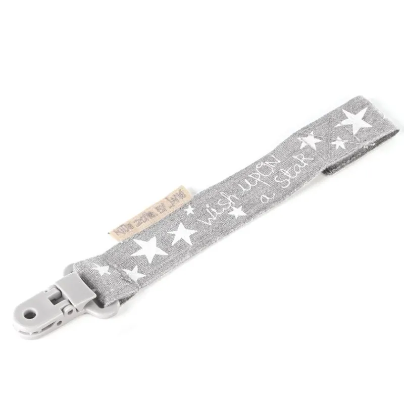 Pinza sujetachupetes de tela con clip de plástico, más seguro y fácil de limpiar que los clips metálicos.