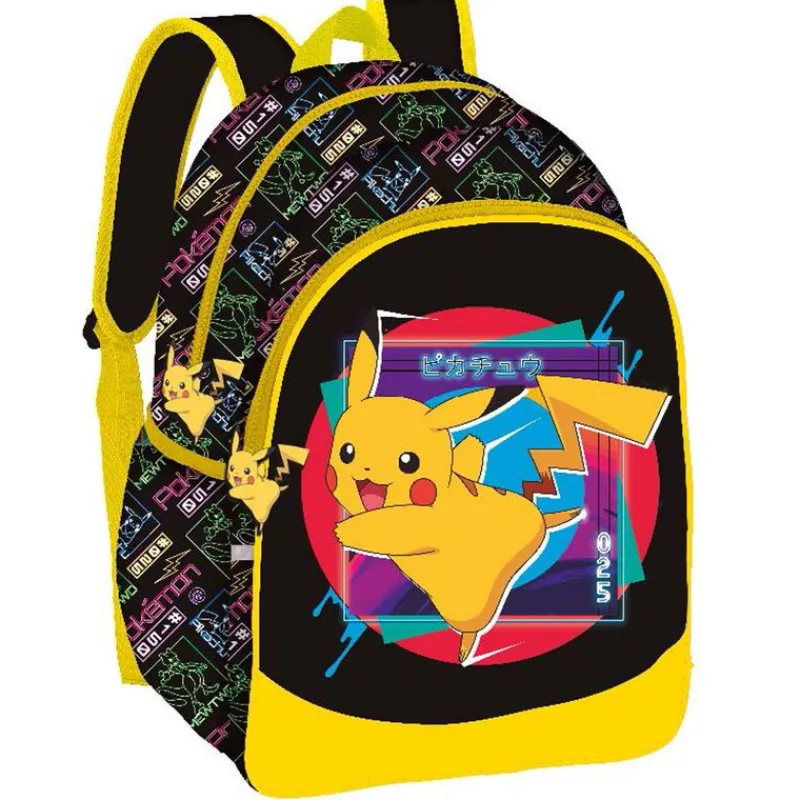 Mochila con diseños inspirados en el videojuego Pokémon. Dispone de 2 compartimentos, de diferente tamaño, para que puedas guardar en el interior tus accesorios escolares. Sus dimensiones son de 43 cm x 34 cm x 17 cm aproximadamente.