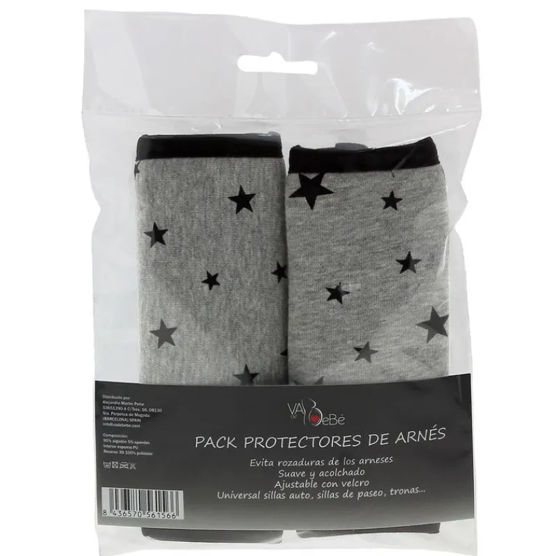 Con estos protectores de arnés tu bebé estará protegido de las temidas rozaduras de los cinturones. Apto para todo tipo de arneses tanto de sillas de paseo como de sillas de auto. Fabricado en tejido de algodón muy suave y acolchado para una total comodidad del niño.