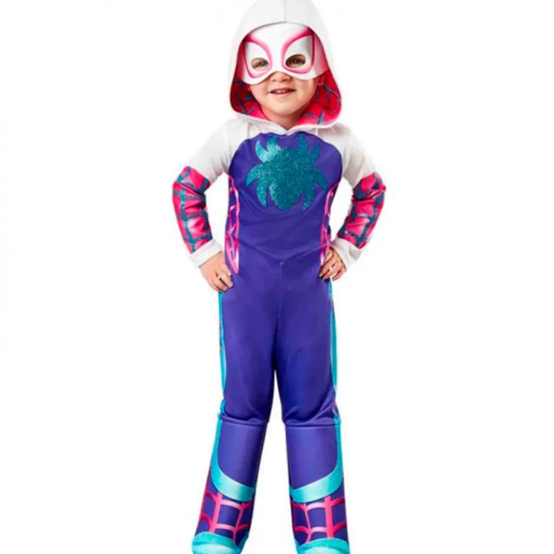 Disfraz con el que podrás convertirte en uno de los personajes de la serie de animación de Spiderman, Ghost Spider. El disfraz se compone de un mono con capucha y cubrebotas y una máscara.