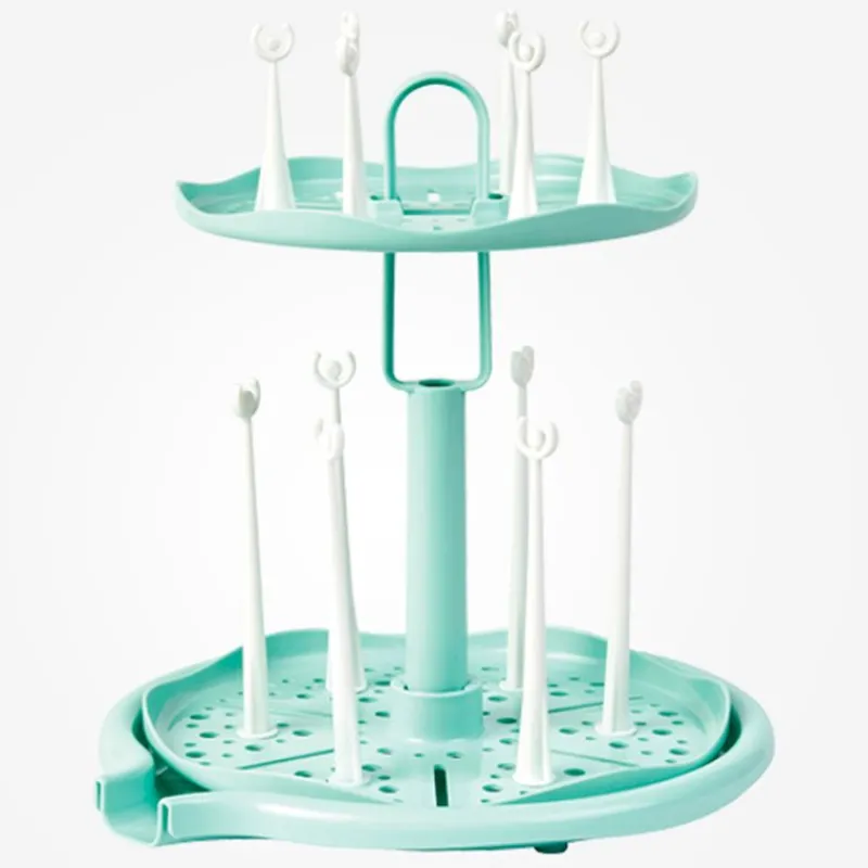 Escurridor giratorio como un carrusel para que puedas coger los biberones fácilmente, debido a su forma te ayuda a evitar que los utensilios entren en contacto con superficies que puedan tener bacterias o gérmenes.