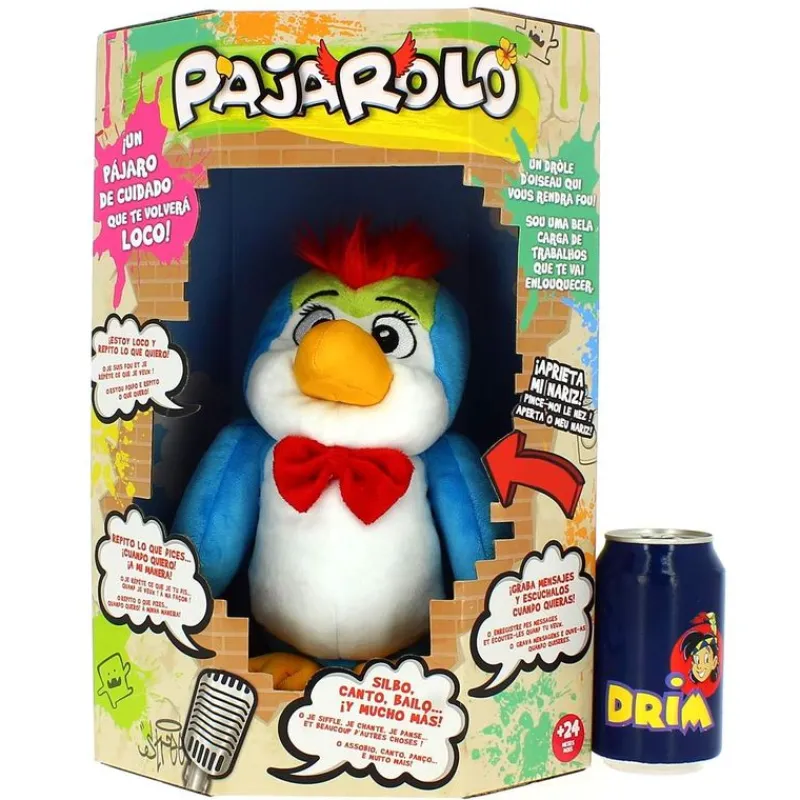 Pajarolo es una de las simpáticas mascotas de la colección Scampies ¡Lo repite todo! Es como un loro de verdad, se mueve arriba y abajo y repetirá todo lo que le enseñes.