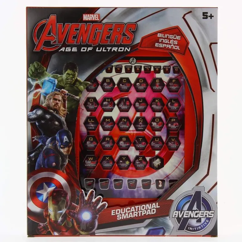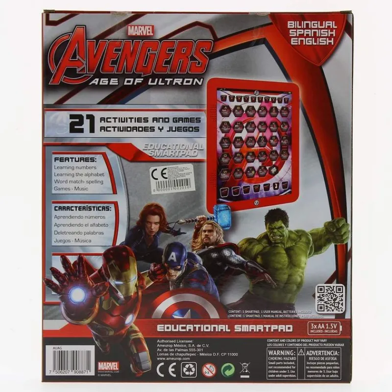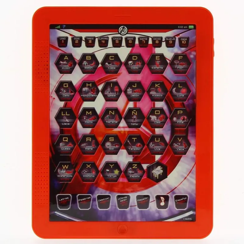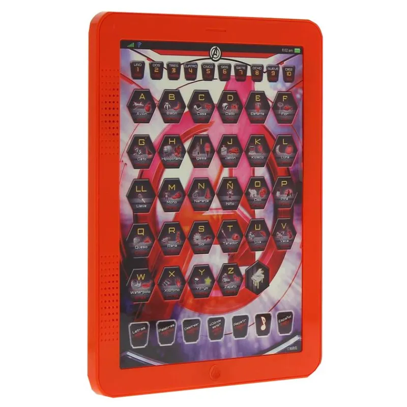 Tablet infantil de tus personajes Los Vengadores con muchas actividades y juegos. Con esta tableta aprenderás los números, el abecedario, palabras, juegos y música.