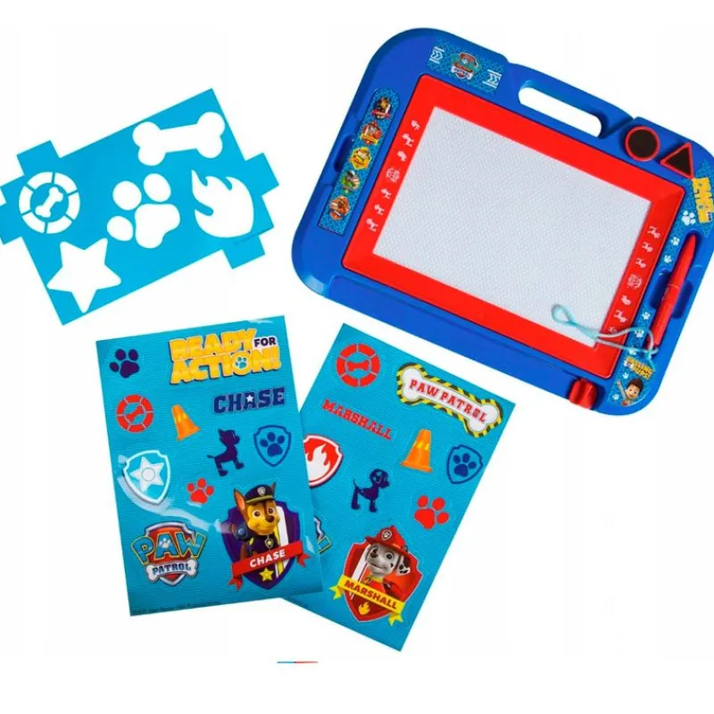 Pizarra magnética con diseños inspirados en la serie de animación Patrulla Canina. Podrás dibujar a tus perritos favoritos y borrarlos por arte de magia. También contiene 2 sellos para hacer formas y 2 hojas de pegatinas. La pizarra tiene unas dimensiones de 28 cm x 38 cm aproximadamente. Recomendado a partir de 3 años.