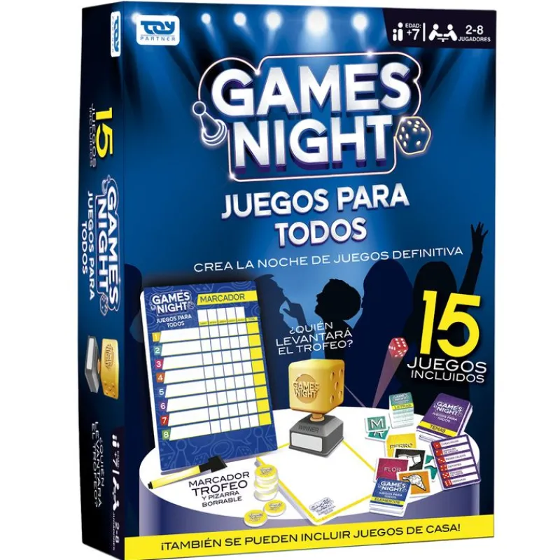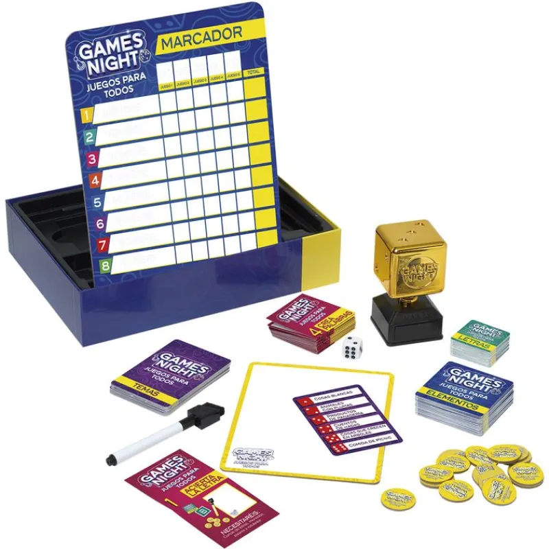 Game Night es un juego de mesa para toda la familia en el que podrás jugar los 15 juegos que incluye como The Name Game, Quick Draw, World Watch, Dice Be Nice o In or Out. De 2 a 8 jugadores. Recomendado a partir de 7 años.