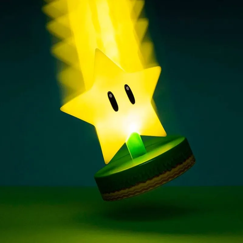 Icónica mini lámpara inspirada en una estrella, el famoso personaje que aparece en los juegos de plataforma de la saga Super Mario.