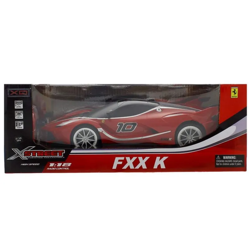 Espectacular coche de radiocontrol Ferrari FXX K a escala 1:18, es una réplica del modelo Ferrari original y es totalmente multidireccional.