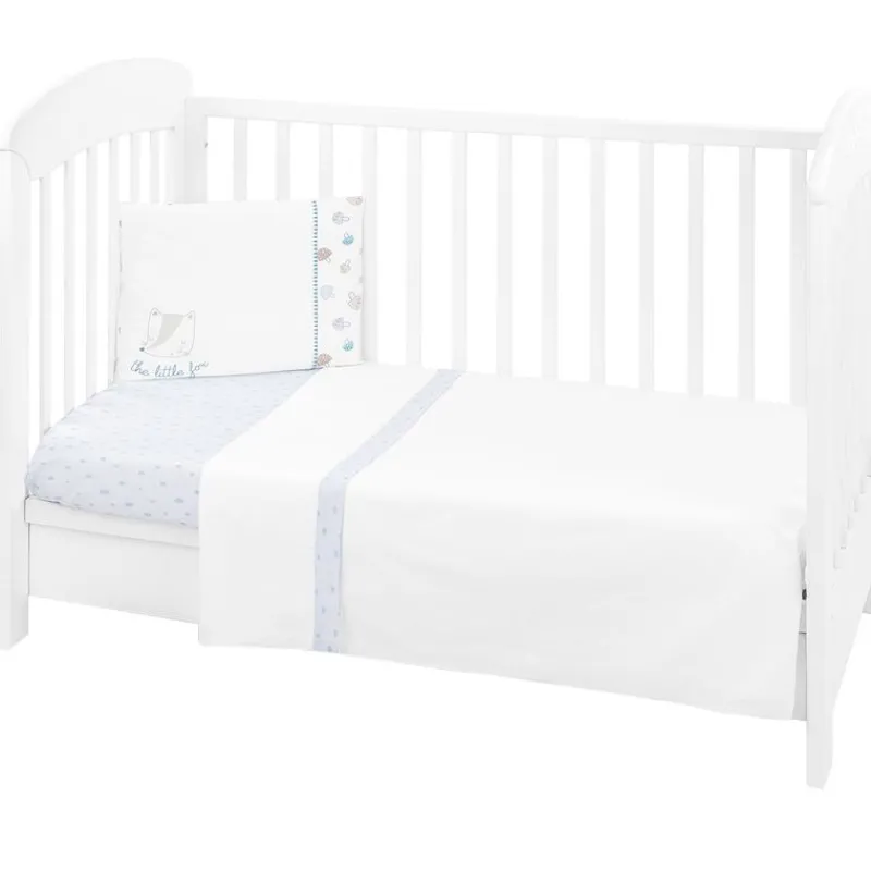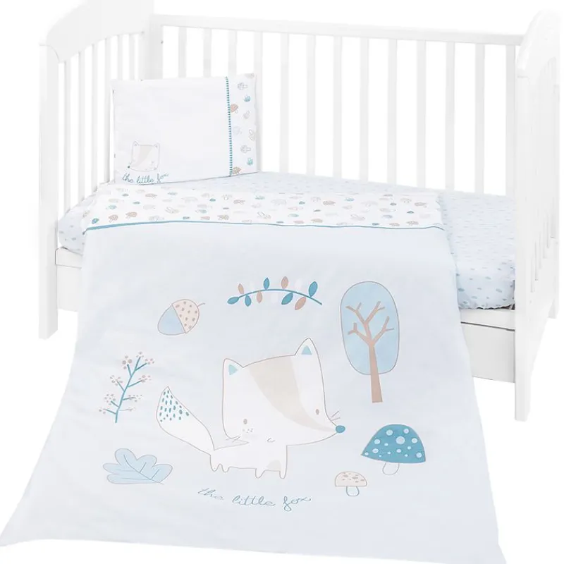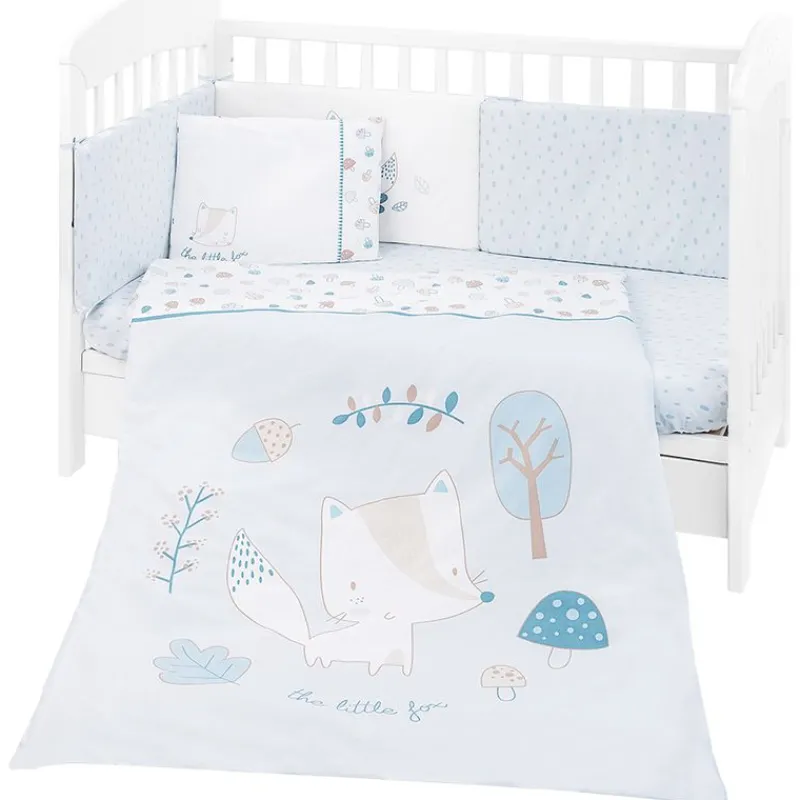 Este set de sábanas está compuesto por una almohada, funda de almohada, funda nórdica, relleno, bajera ajustable y protector de cuna (chichonera).