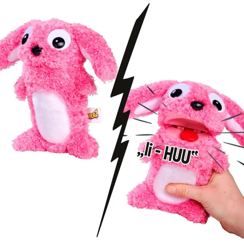 Peluche de la colección ScreamerZ que dispone de 3 funciones de sonido, dependiente del tiempo que se presione o agite el peluche, abre la boca y suelta diferentes gritos.