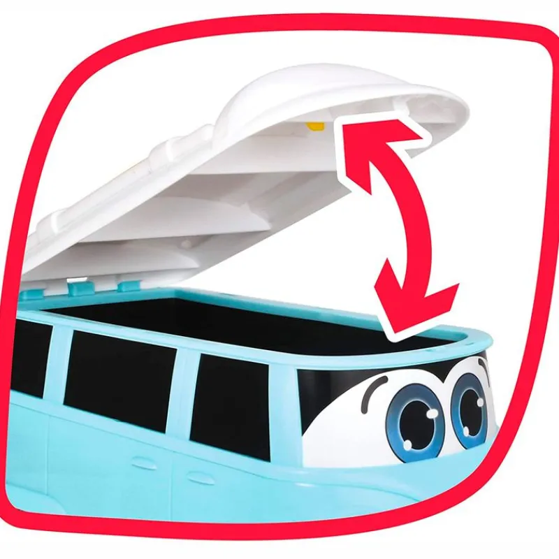 Furgoneta surfera que podrás decorar como más te guste con las pegatinas que vienen incluidas. Su sistema de giro de ruedas es libre y su techo se abre. Su tamaño es de 25 cm aproximadamente. Recomendado a partir de 1 año.