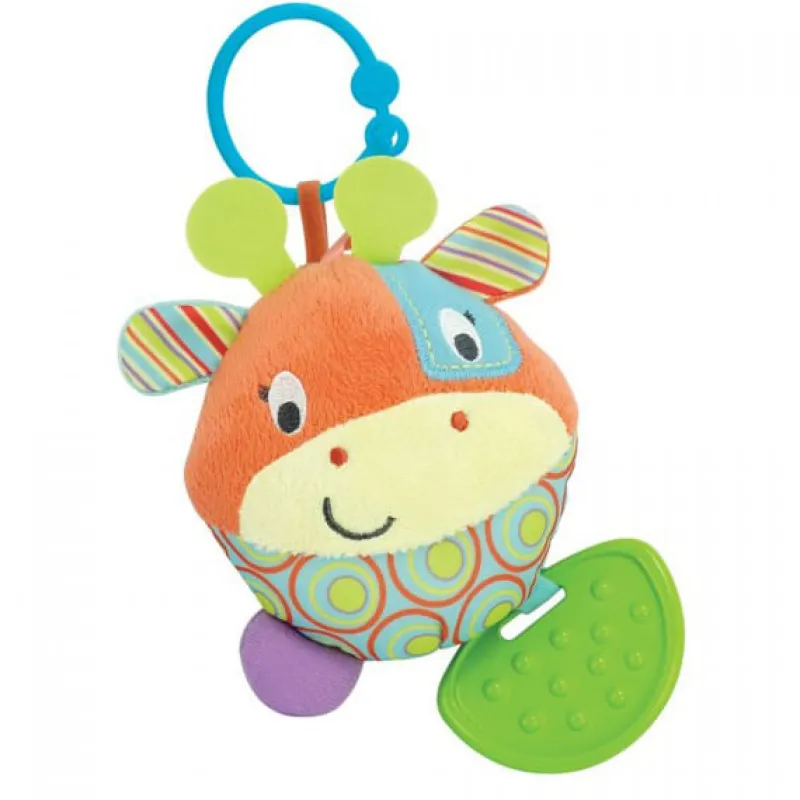 Sonajero mordedor con forma de jirafa. Los bebés se pueden llevar a la boca con total tranquilidad. Sus colores, forma ayudan a la estimulación de los sentidos del bebé.