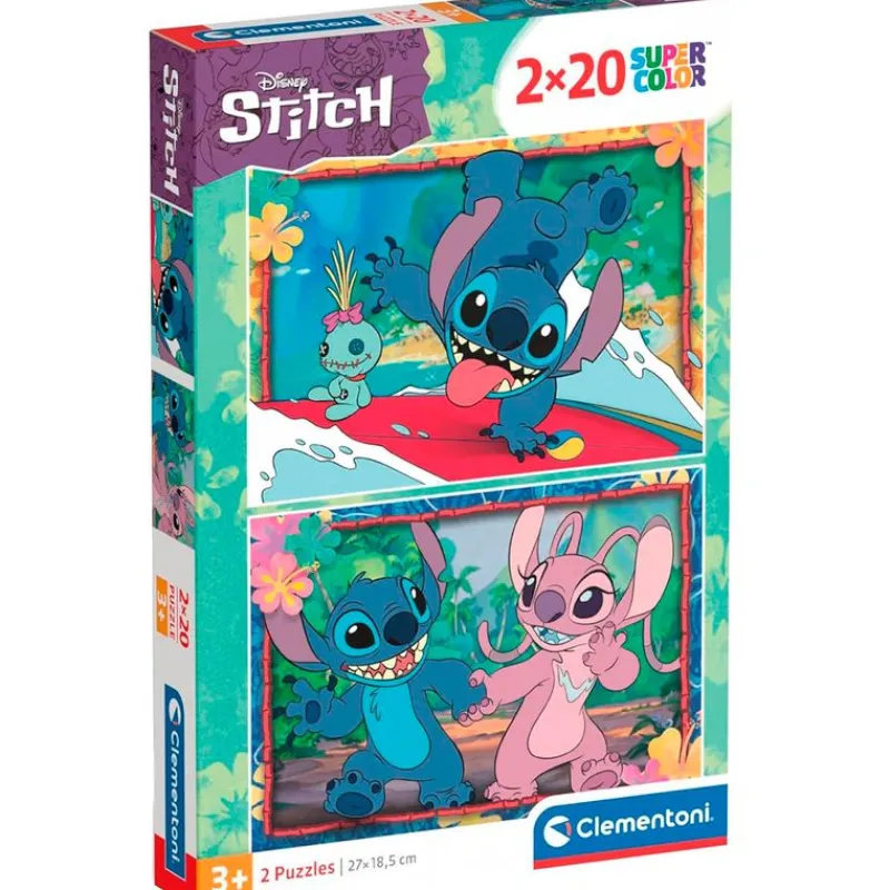 Pack compuesto de 2 puzzles de 20 piezas cada uno con los que podrás construir imágenes inspiradas en la película Lilo & Stitch. Recomendado a partir de 3 años.