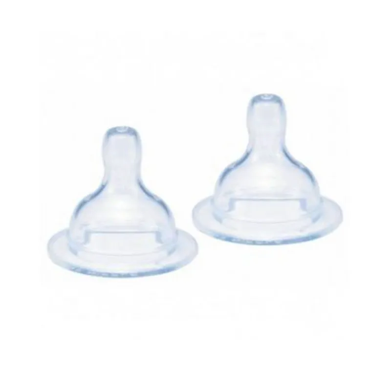 Tetina de flujo lento , especialmente indicada hasta los 3 meses aproximadamente.Las válvulas anticólico de la tetina y de la base de silicona dejan circular el aire en el fondo del biberón, reduciendo así además la fuerza que el bebé tiene que efectuar al succionar.