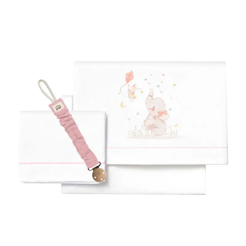 Triptico Sábanas cuna de 120*60 Elefante Bco/Rs*INTERBABY Clearance